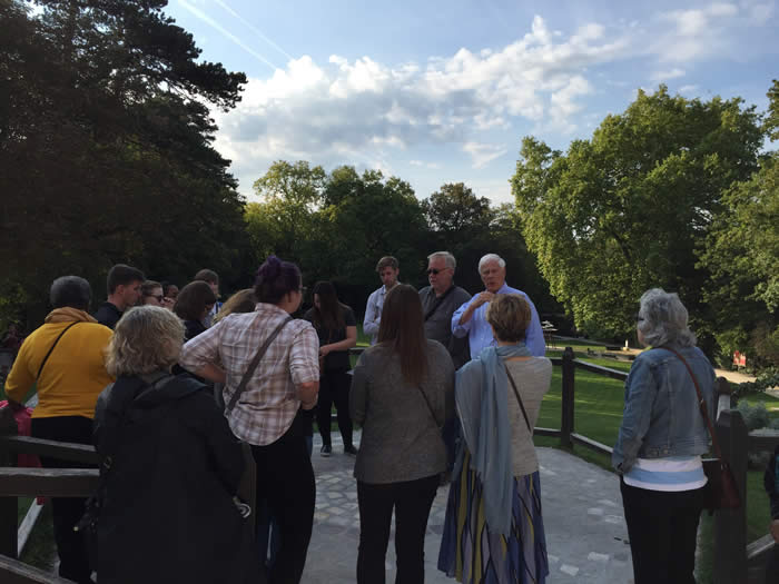 Dr. Morris Marx giving a talk about the life and contributions of Leonardo da Vinci on the grounds of da Vinci's last residence. |