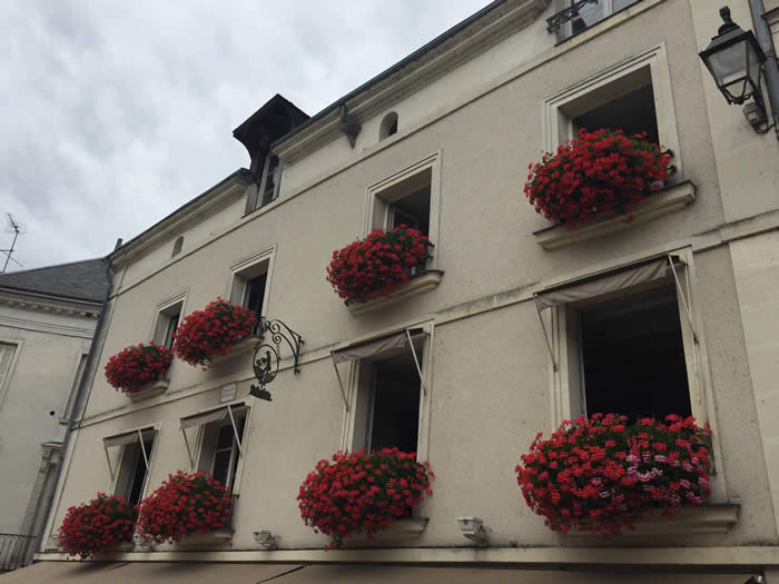Beautiful window baskets on a building down the street from the Ch‰teau d'Amboise. One of the many highlights of Amboise was a delicious lunch and the gellato shop across the street from this building. |