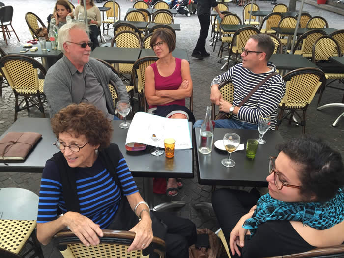 Some of the faculty in the Village Program relaxing in a square in Tours, France. We stayed one night in Tours and had the best wine of our entire trip -- a Pomerol from Bordeaux region in southwestern France. |