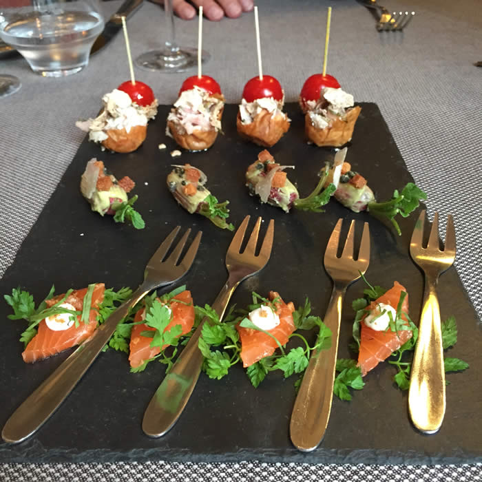The restaurant on the grounds of Ch‰teau De Pray - built inside of a cliff. Below are some of the servings.