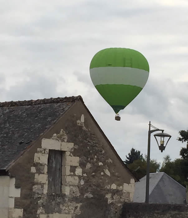 A surprise hot aire balloon graces the village just above the Abbey grounds. |
