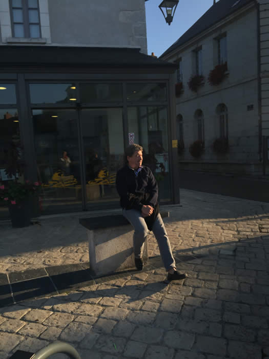 A picture of me sitting outside the bakery on a glorious evening waiting for the pizza restaurant (O Peche Mignon) to open. Excellent pizza!