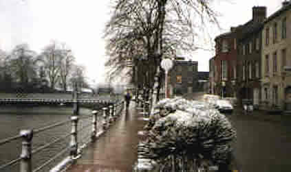 ![]() A view down the river during snowfall. |