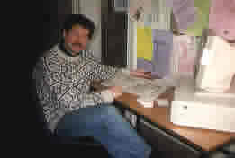 Using the computer located in the landing of the stairwell in the Applied Psychology Building. This was a daily event for me and my life line to the U.S. (phone calls were quite costly!) |